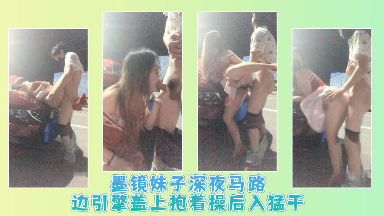 墨镜妹子深夜马路边引擎盖上抱着操后入猛干。