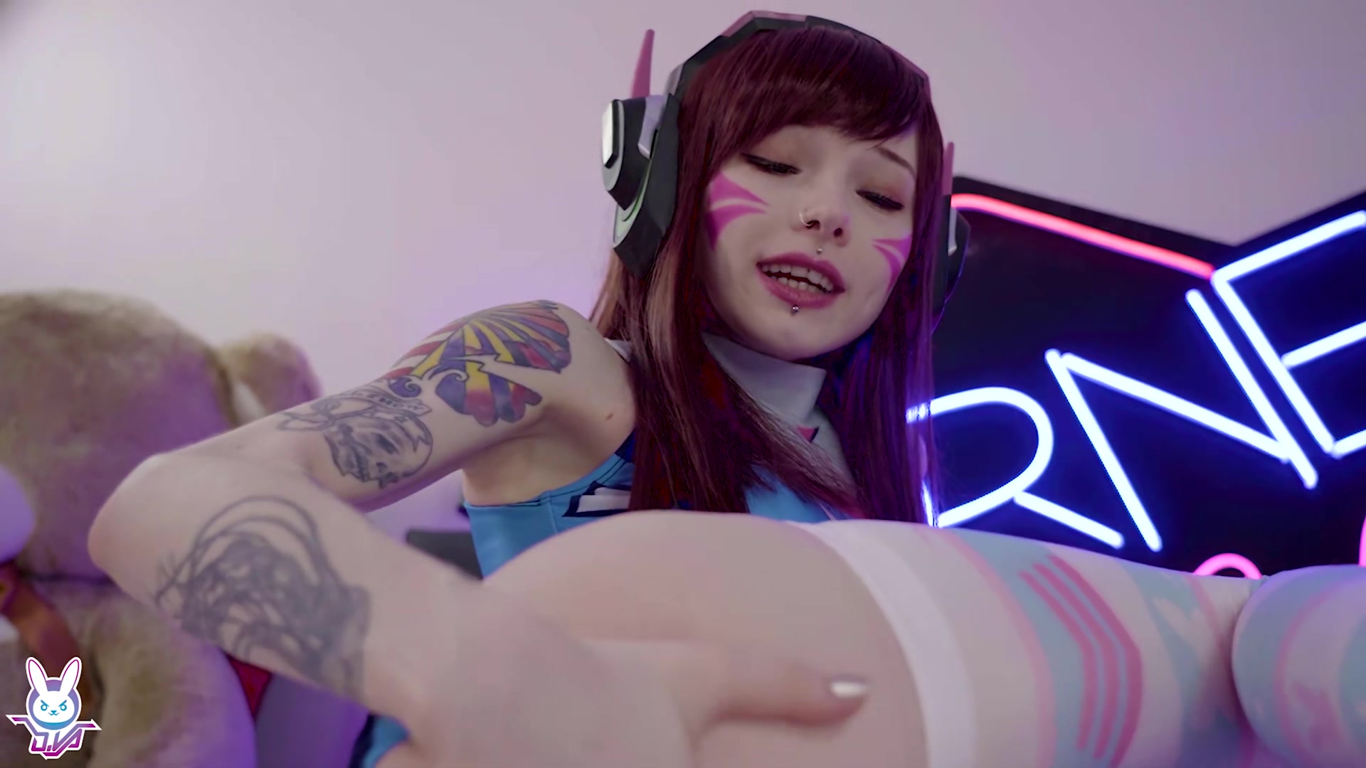 可爱唇钉妹子COS守望先锋DVa自摸啪啪拨开内裤露无毛粉逼