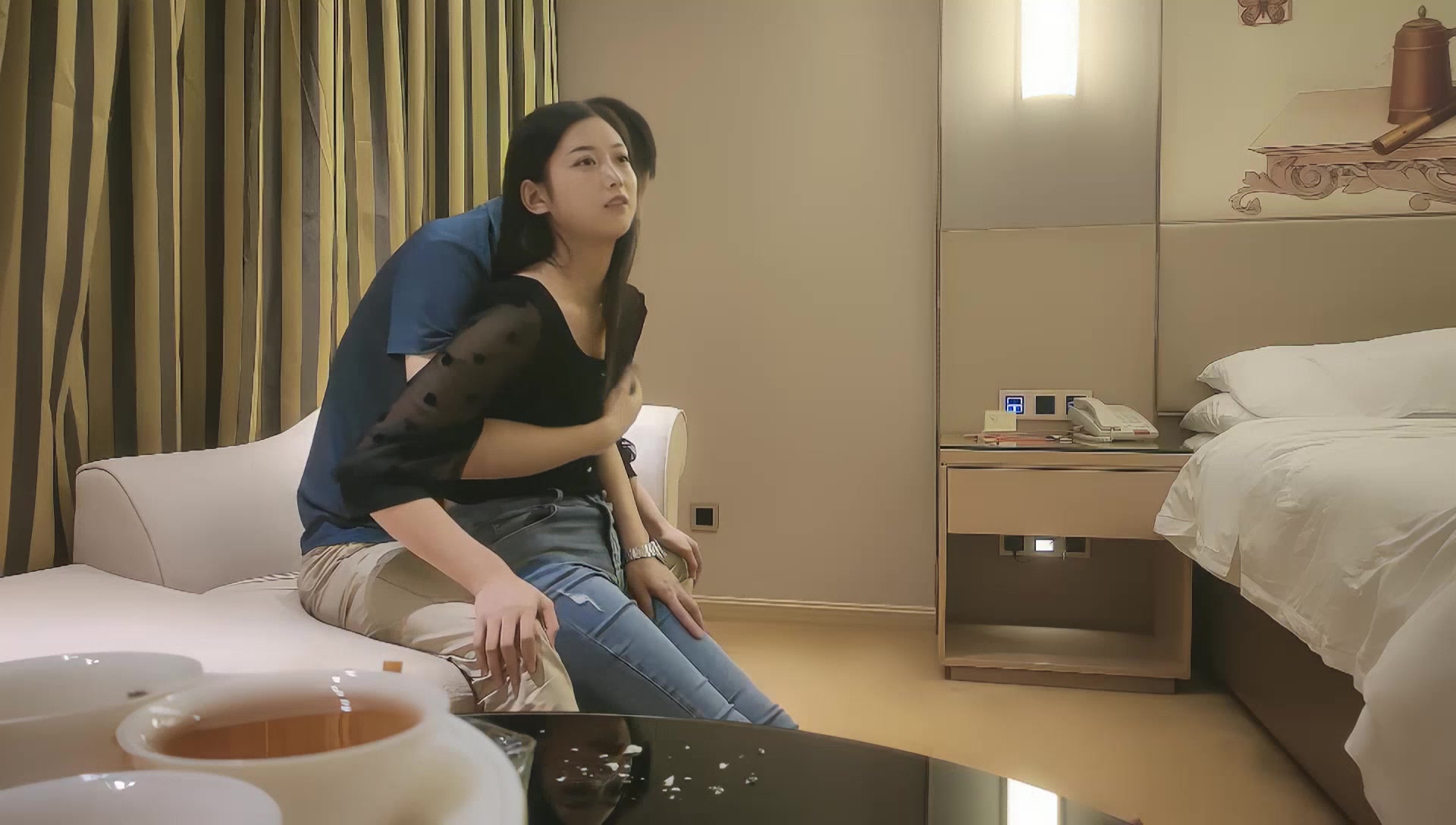 穿着紧身牛仔裤身姿优美,介绍说她的胸很大口活很好,因为操的时间太长妹妹都要哭出来了