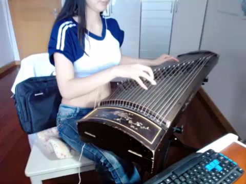 弹得了古筝自得了慰多才多艺大波妹