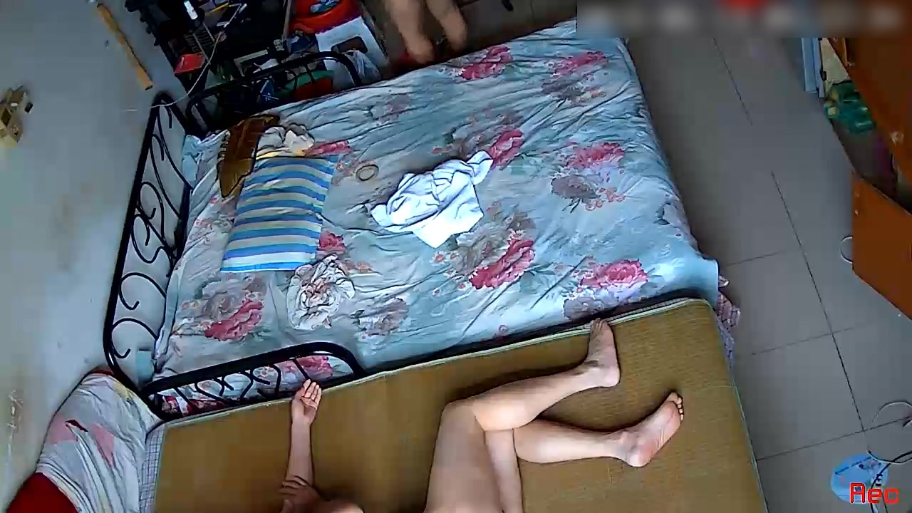 黑客破解家庭网络摄像头监控偷拍熟睡大叔突然起来扑到准备穿衣服的媳妇强搞让她别动