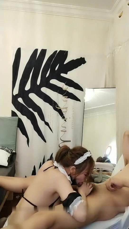 情趣女仆白皙美乳妹子和炮友双人啪啪 口交椅子上位骑乘