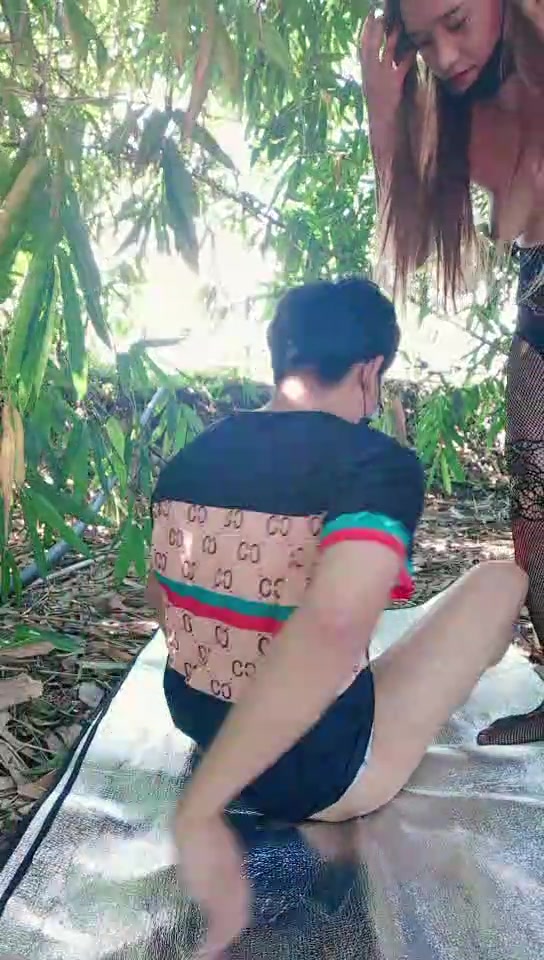 颜值不错的少妇黑丝情趣跟小哥河边树荫下激情啪啪,全程露脸口交大鸡巴,嘴里叼着内裤被后入。